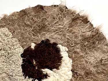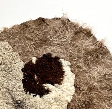 Sculptural and wearable works exploring wool, texture, and slow hand processes.
